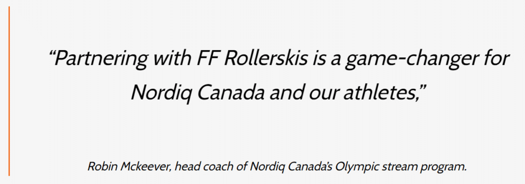 Samarbeidet vil sikre at Canadas nasjonale skilandslag har tilgang til det beste utstyret, slik at de kan maksimere hver rulleskiøkt. «Å samarbeide med FF Rollerskis er en game-changer for Nordiq Canada og våre utøvere,» sa Robin Mckeever, hovedtrener for Nordiq Canadas OL-program. «Deres ekspertise og motivasjon til å produsere førsteklasses rulleski, vil utvilsomt løfte treningsopplevelsen til vår utøvere. Vi gleder oss til å jobbe sammen for å spre gleden og spenningen ved rulleski fra kyst til kyst.»